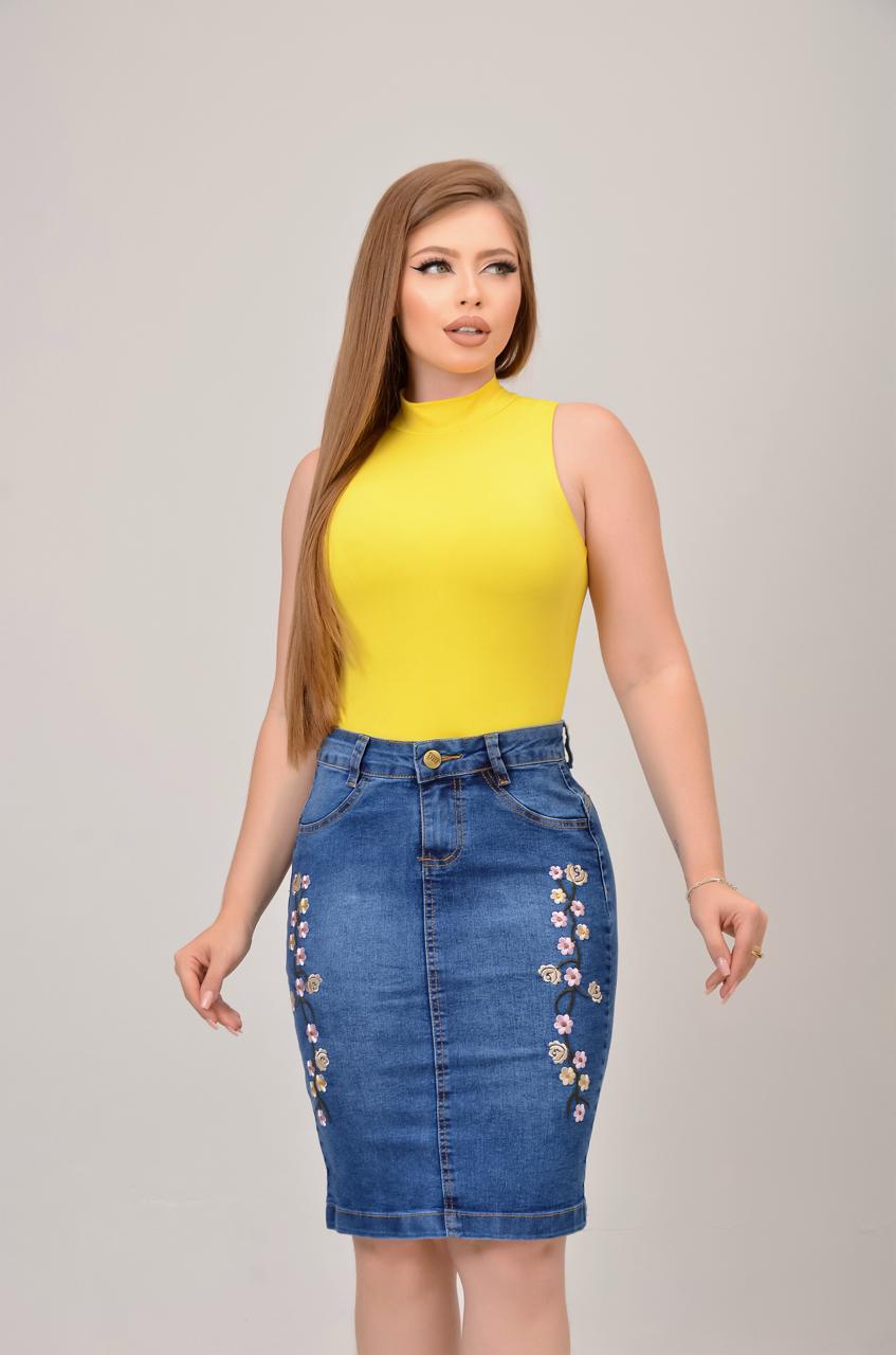 O detalhe do bordado adiciona um toque especial, tornando a saia ainda mais bonita e única. O fechamento em zíper garante praticidade e facilidade ao vestir, tornando-a uma peça indispensável no guarda-roupa.