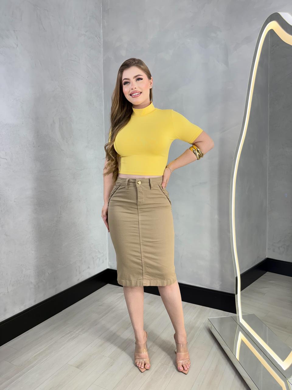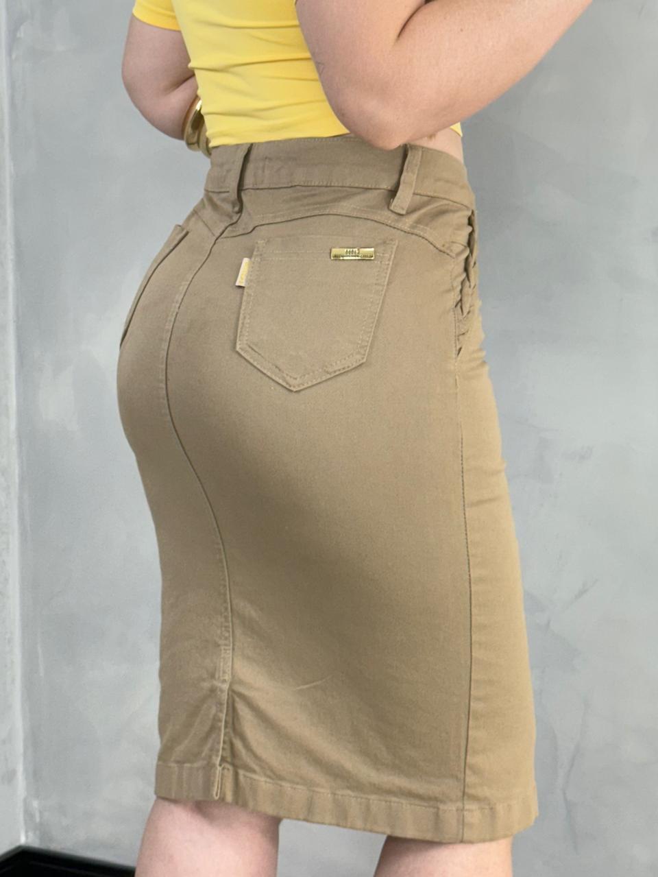 Confeccionada em jeans de alta qualidade, esta saia combina praticidade e estilo. Seu tom bege versátil permite diversas combinações, tornando-se uma peça chave no guarda-roupa. Ideal para quem valoriza a moda evangélica, ela traz um toque clássico e atemporal, mantendo-se alinhada às tendências atuais.