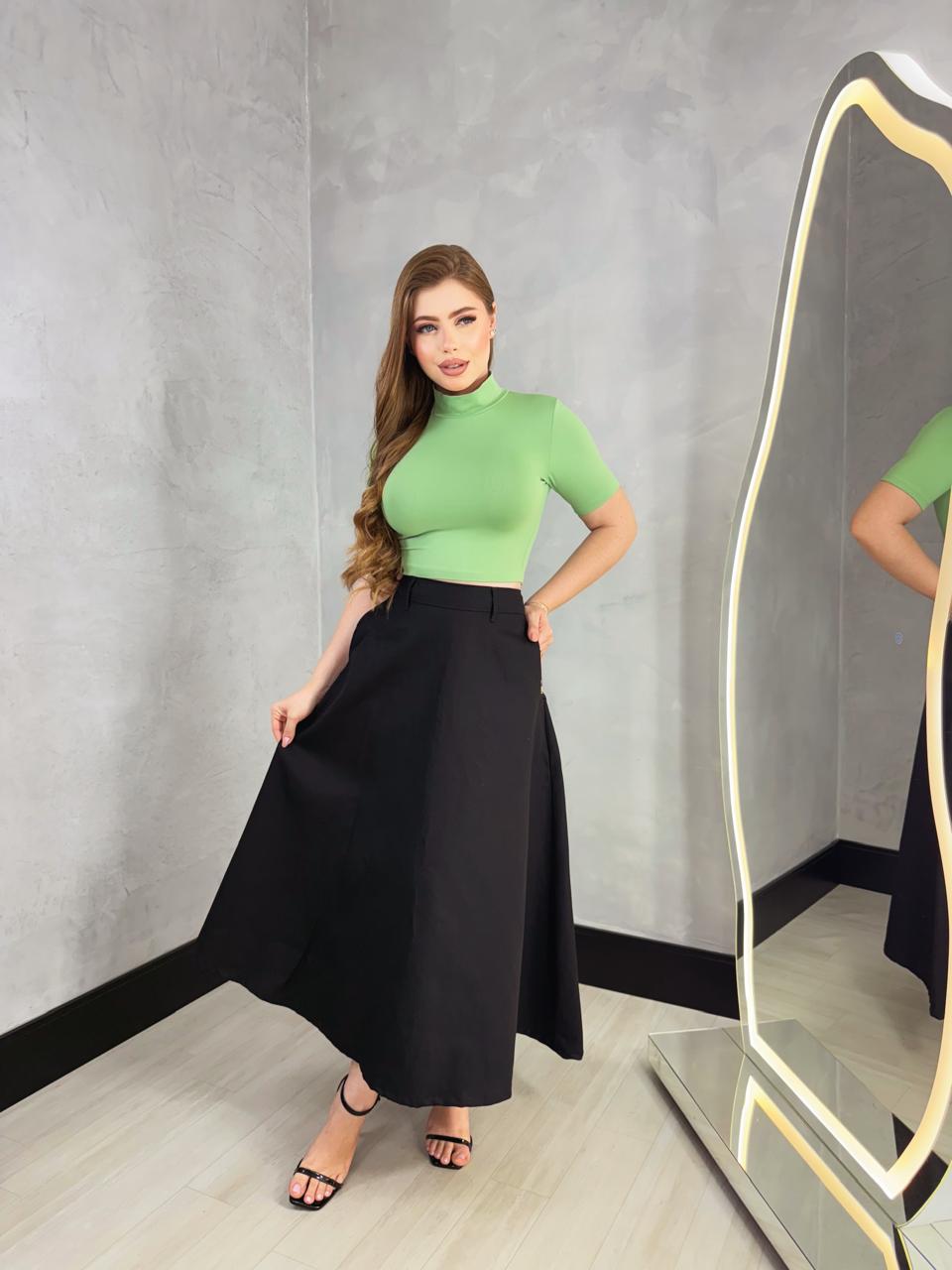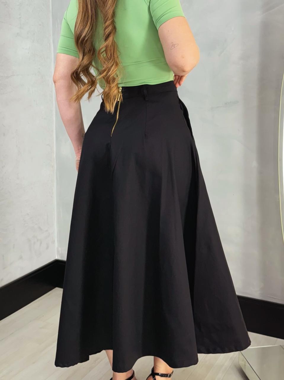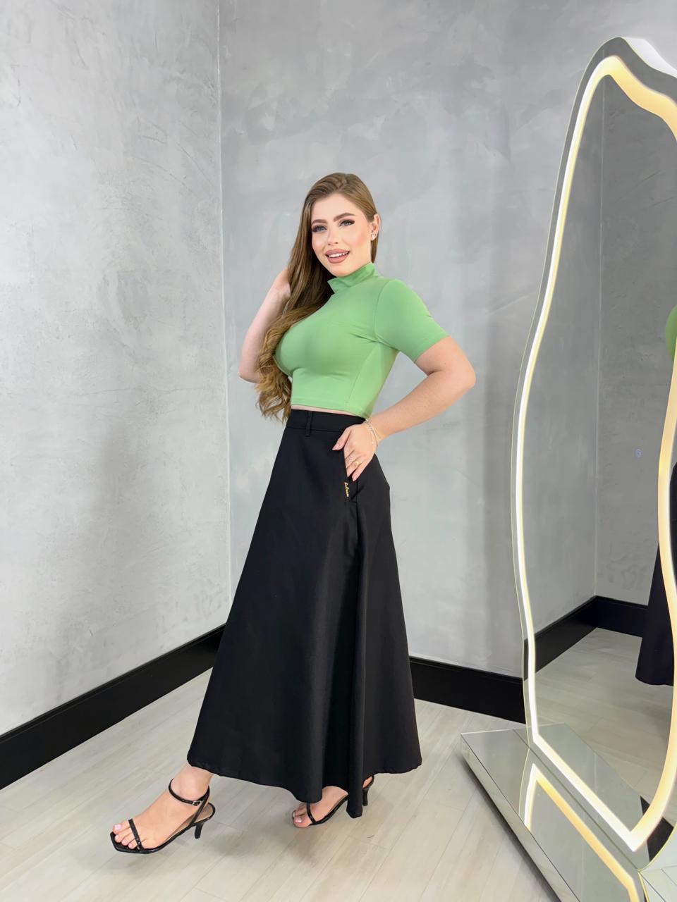 Os detalhes funcionais, como o bolso elegante, adicionam praticidade ao visual, permitindo que você carregue pequenos itens essenciais sem perder o estilo. Combine essa saia com blusas variadas, sandálias ou sapatos elegantes e crie looks que expressam sua personalidade.