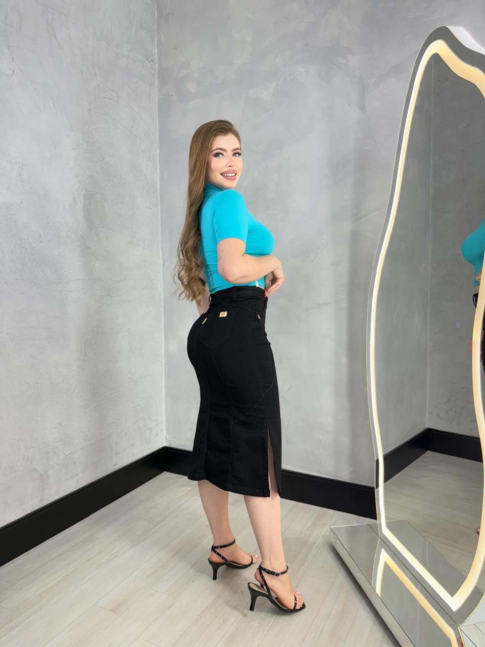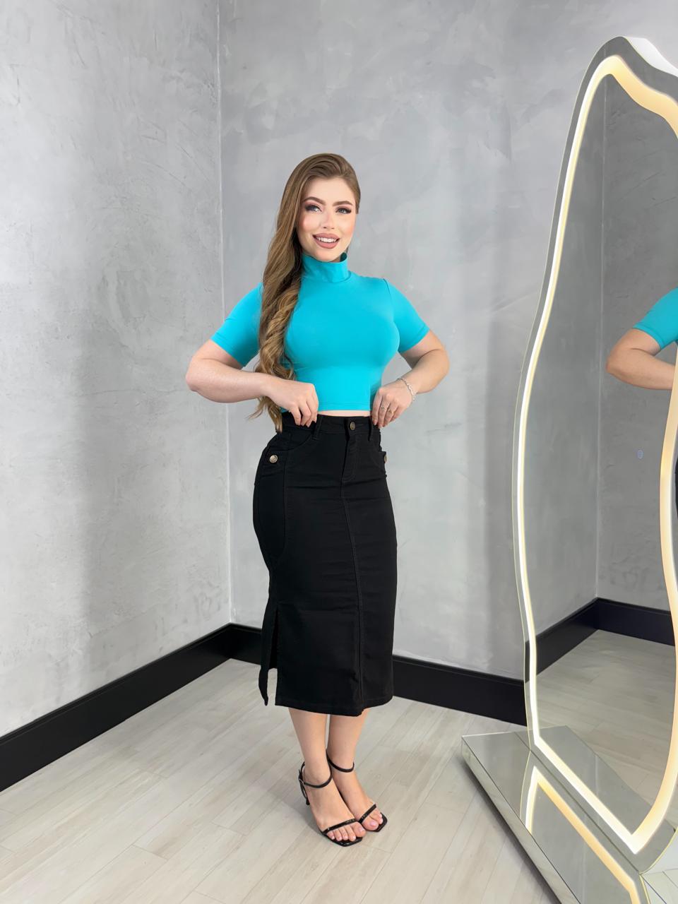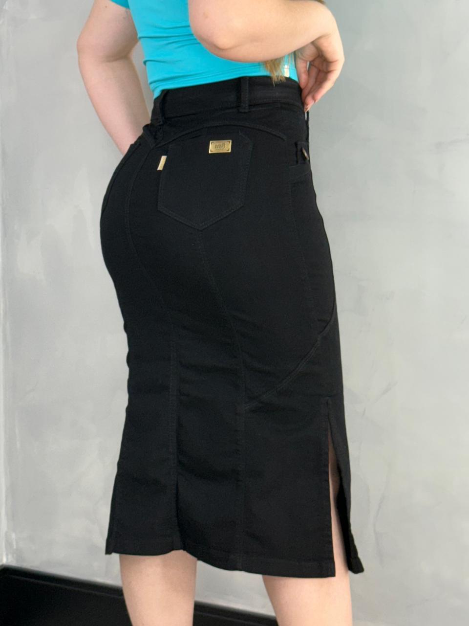 Disponível em uma linda cor preta, esta saia é fácil de combinar com blusas e acessórios, permitindo criar looks diversos para seu dia a dia. A escolha ideal para a mulher contemporânea que aprecia uma moda que une valores e beleza.